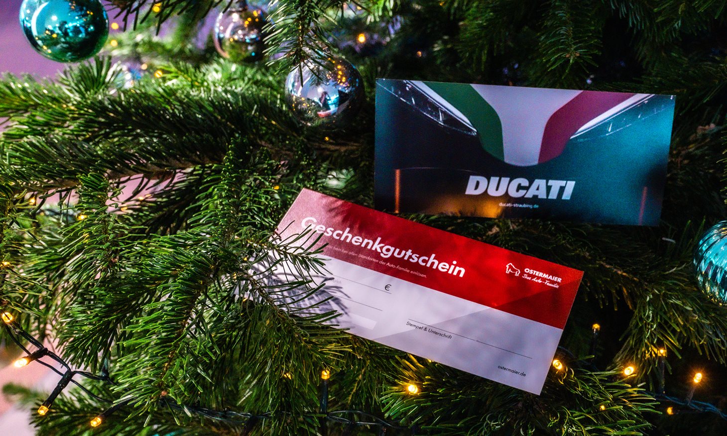 Wir haben das perfekte Geschenk für Sie! Mit einem Geschenkgutschein von Ducati Straubing liegen Sie immer goldrichtig. Ob für Zubehör, Service oder ein Beitrag zum nächsten Motorrad-Highlight – unser Gutschein bringt garantiert strahlende Augen unter dem Weihnachtsbaum.